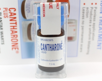 Brand name Cantharone 0.7 %/7.5 ml liquid is an OTC item manufactured by Dormer Lab in Canada. It is a liquid solution for the external use only. It is supplied in the quantity of 1 bottle. No prescription is required for this product.