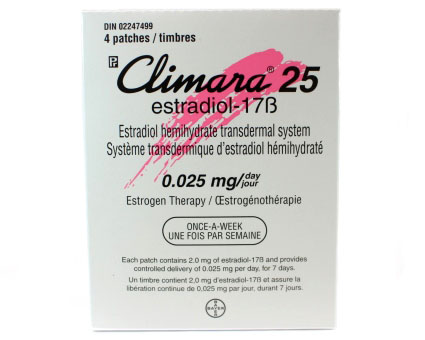 Climara Patch (Generic name: Estradiol Patch) is an estrogen replacement therapy used for the symptoms associated with menopause (e.g., hot flashes, night sweating, vaginal dryness, etc.), prevention of bone fractures associated with osteoporosis, reduction of the risk of heart attacks and strokes, and dysfunctional (excessive and painful) uterine bleeding. Use Climara Patch exactly as it was prescribed for you.