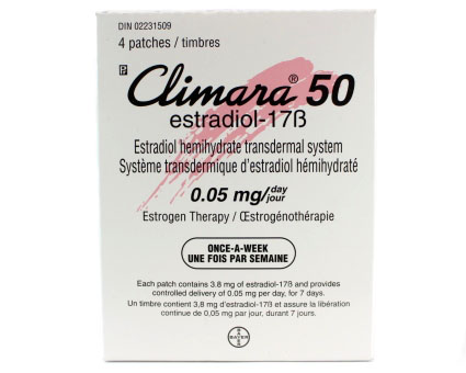 Climara Patch (Generic name: Estradiol Patch) is an estrogen replacement therapy used for the symptoms associated with menopause (e.g., hot flashes, night sweating, vaginal dryness, etc.), prevention of bone fractures associated with osteoporosis, reduction of the risk of heart attacks and strokes, and dysfunctional (excessive and painful) uterine bleeding. Use Climara Patch exactly as it was prescribed for you.