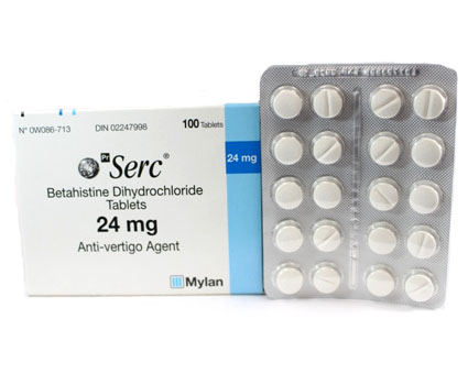 Serc (Generic name: Betahistine Hydrochloride) is a prescription drug used to treat Vertigo, and conditions associated with Ménière's disease. Betahistine Hydrochloride works by improving blood flow in the inner ear that brings down the build-up of pressure. It is this pressure in the ear which is thought to cause the vertigo (dizziness), tinnitus (ringing in the ears) and hearing loss suffered by people with Meniere’s disease. Betahistine is an anti-vertigo drug used in the management of Ménière's syndrome. Take Betahistine Serc exactly as it was prescribed for you.