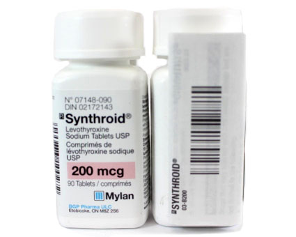 The brand Synthroid 200 mcg comes from Canada manufactured by BGP Pharma/Mylan. It is available in the quantity of 90 tablets.