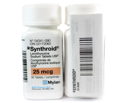 The brand Synthroid 25 mcg comes from Canada manufactured by BGP Pharma/Mylan. It is available in the quantity of 90 tablets.