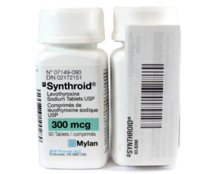 The brand Synthroid 300 mcg comes from Canada manufactured by BGP Pharma/Mylan. It is available in the quantity of 90 tablets.