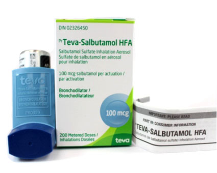 The generic Albuterol Inhaler 100 mcg/200 dose comes from Canada manufactured by Apotex (also known as Apo-salbutamol HFA or Apo-Salvent HFA) and Teva (also known as Teva-salbutamol HFA). It is supplied in the quantity of one and three inhalers.