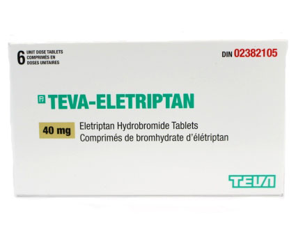 The generic Eletriptan 40 mg comes from Canada also called Teva-Eletriptan manufactured by Auro Pharma. It is available in the quantity of 6 and 12 tablets.